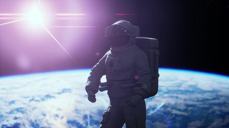 Astronaut working on a spaceship. Elements of image furnished by NASA Pro Video