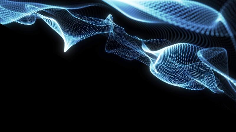 Abstract digital dynamic particle waves with motion light background, data flow on dark background. 3d rendering. Pro Video