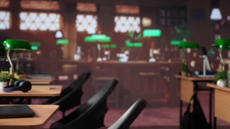 Wooden library on campus with a huge database collection of study books, designated space for academic research and educational tasks. University bibliotheque used for self learning. Camera B. Pro Video