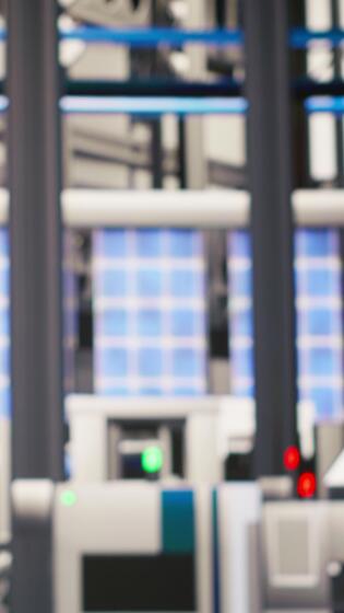 Vertical Engineer in smart factory implementing renewable energy solutions by integrating solar technology with automated assembly systems, enhancing production efficiency, camera B Pro Video