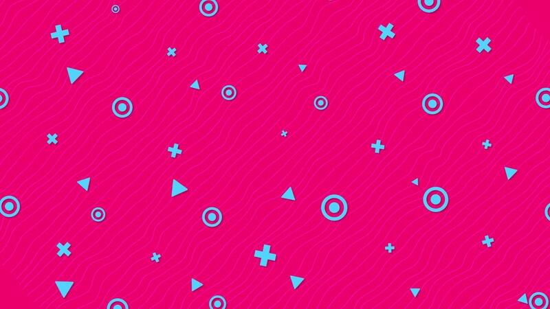 80s and 90s inspired vibrant retro background with bright cyan geometric shapes on red wavy lines pattern. Full HD and looping Memphis Style animation. Free Video