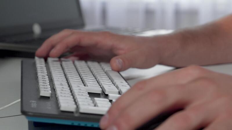 Focused male hands typing swiftly on a sleek computer keyboard Pro Video
