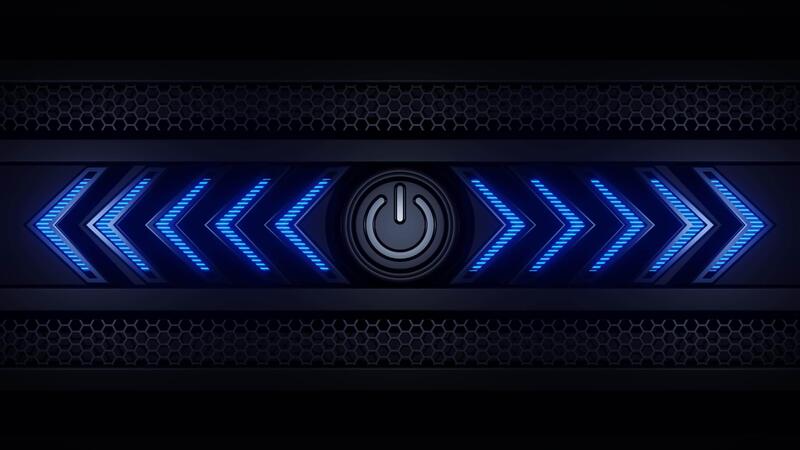 Blue Neon Power Button with Sequential Arrow Lights in Sci-Fi Black Mesh Frame Free Video