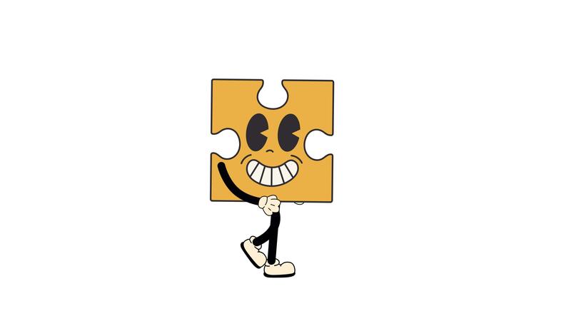 Groovy retro cartoon puzzle walking in a seamless loop animation with transparent background. Free Video
