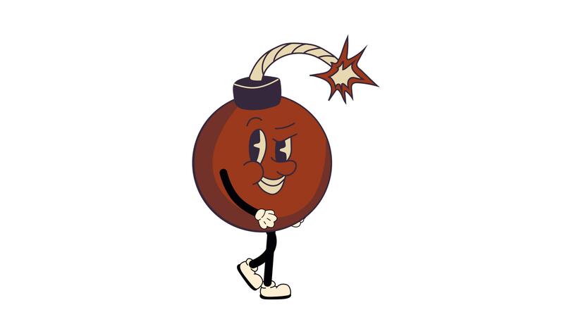 Groovy retro cartoon bomb walking in a seamless loop animation with transparent background. Free Video