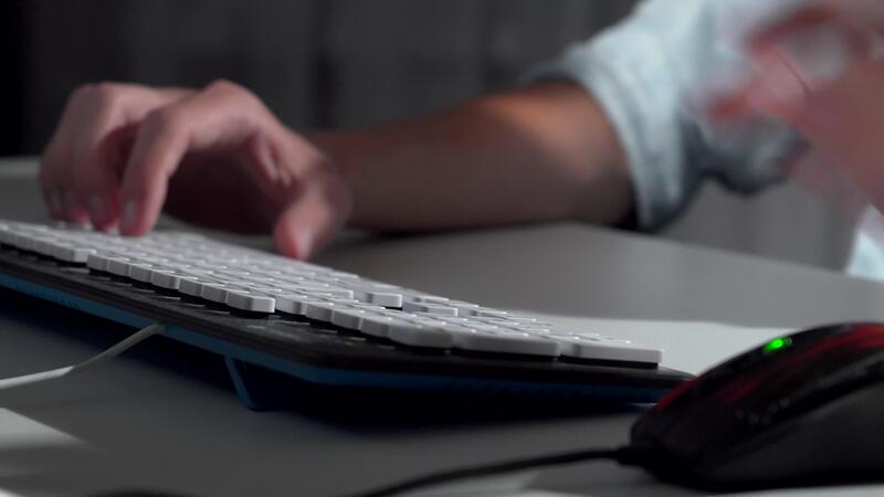 Focused hands of a man typing swiftly on a sleek computer keyboard Pro Video
