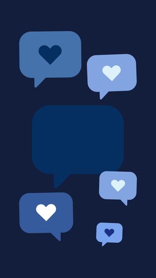 Stop motion animation of heart shaped chat bubbles popping up one by one with a blank bubble included, creating a dynamic and playful design with blue shade colors Pro Video