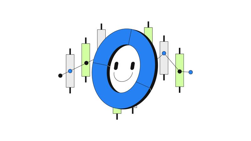 Positive donut piechart and candlestick chart data 2D onboarding ui animation. Visual metrics. Happy report. Optimistic analytics animated cartoon flat concept metaphor 4K isolated on white Pro Video