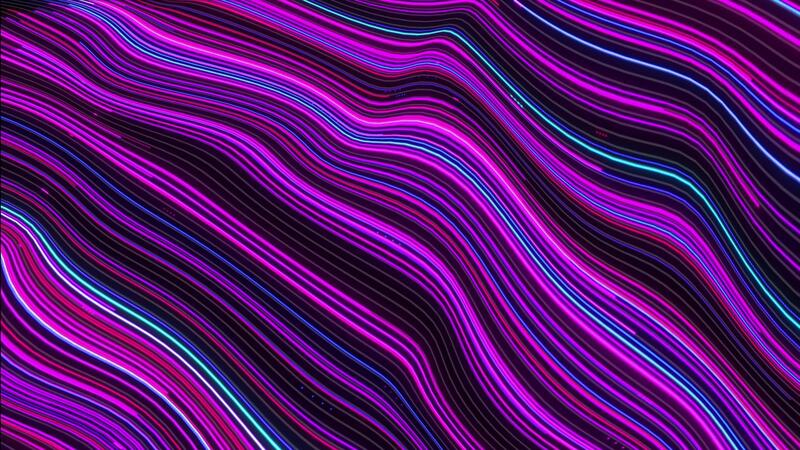 Turbulence of particle lines. Digital technological animation. Abstract animated contour . Contour topographic texture. Moving waves on a black background. 4K Pro Video