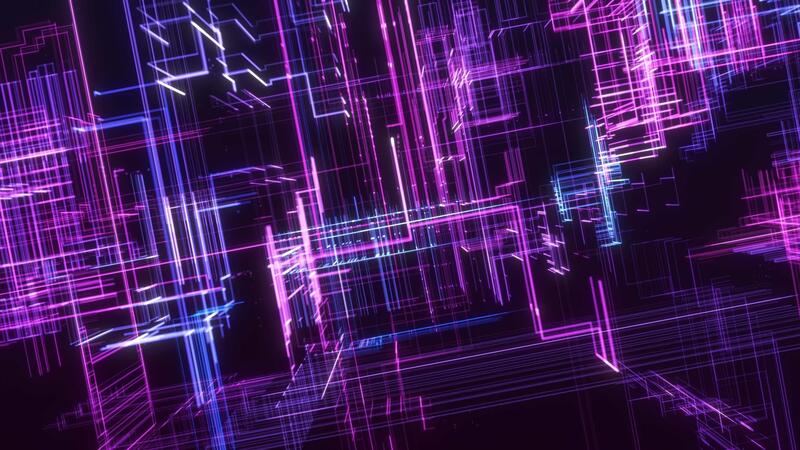 Technological cyberspace. Digital Futuristic abstract background. Blockchain concept. 4k digital element background. The lines and points of the cyber grid form information blocks, large data fields. Pro Video