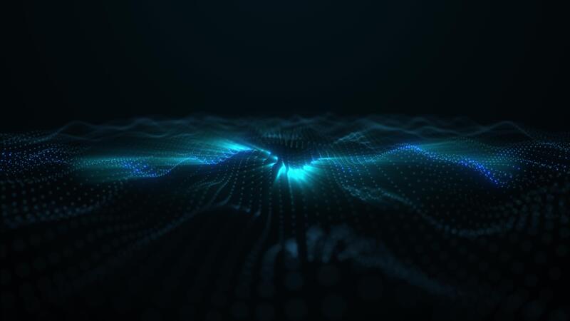 Abstract blue wave particle over dark, digital technology. Light abstract background with shining dots Pro Video