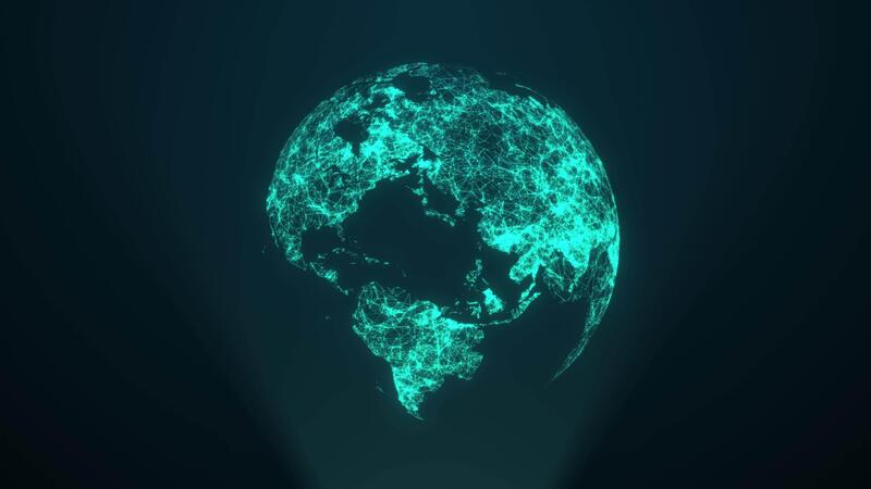 Rotating world globe from particles. HOOD, FUI. Big Data Connection. Digital Hologram of the planets Erth. World map animation. Seamless loop Pro Video