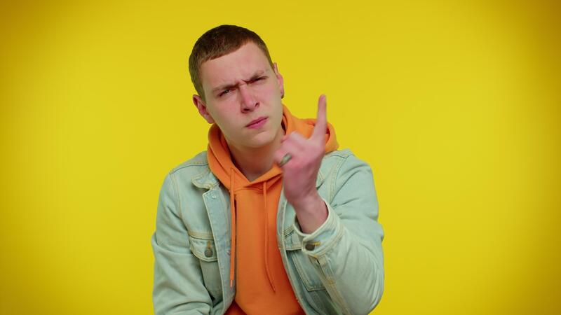 Man gesturing in irritation and displeasure, blaming scolding for failure, asking why this happened Pro Video