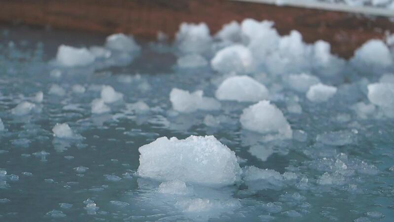 Ice formations create unique patterns on tranquil water surface Pro Video