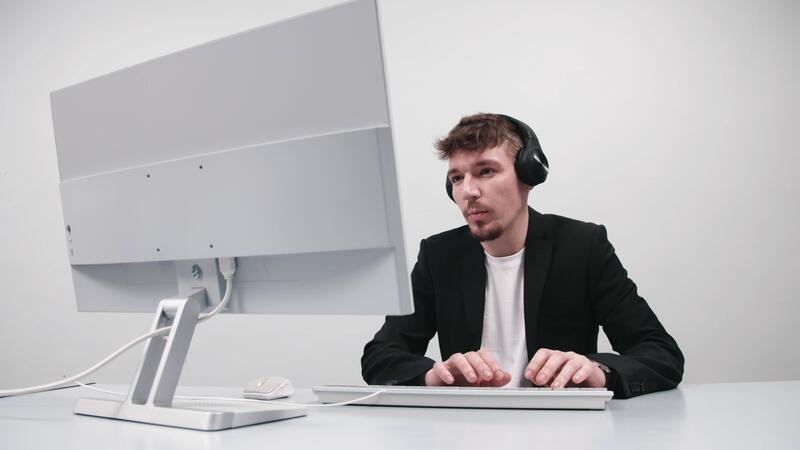 Technical support operator working with a headset in the office, speaking with a customer. Concept high-quality customer assistance, efficient problem-solving, and professionalism in service Pro Video