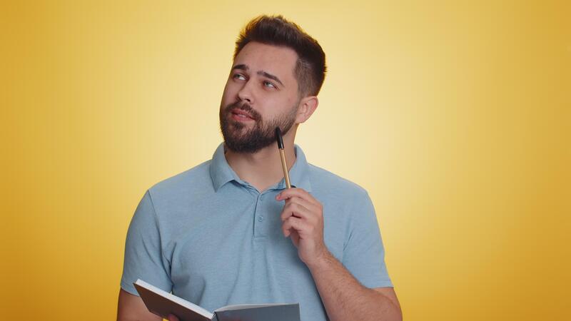 Man making notes, writing down thoughts with pen into notepad notebook diary, to do list, good idea Pro Video
