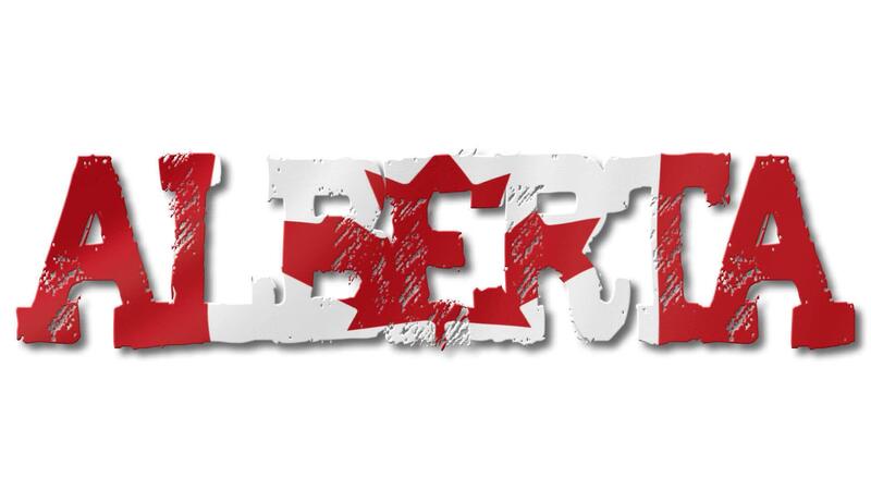 Alberta Text with Canada Flag Waving Inside. Seamless Loop Animation on Transparent Background. Free Video