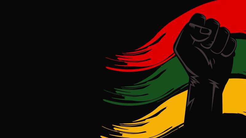 Animated raised clenched fist symbolizing freedom, power, and resistance on a Juneteenth-themed background. Includes empty copyspace area for text or message placement. Free Video
