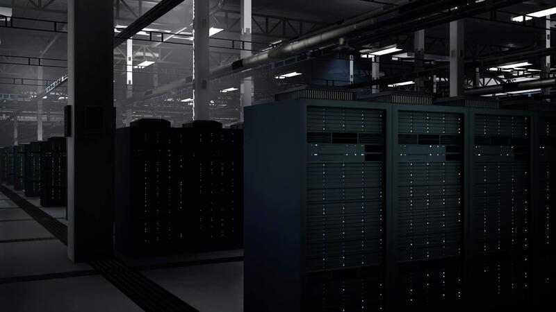 High tech data center operating computational hardware dedicated to processing AI workloads. Server hub rigs operating massive datasets used in deep learning processes, trucking left shot Pro Video