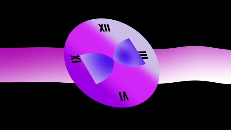A distorted clock melts over a purple background, referencing surrealism and the bending of time in a smooth animation Free Video
