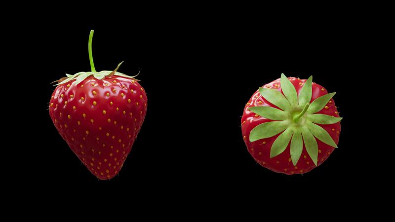 Cyclic rotation of two types of strawberry around their axis. Looping motion. Close-up. Alpha Channel. Pro Video
