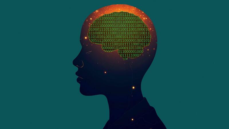 Digital brain with binary code inside human head silhouette, Artificial intelligence concept showing binary code forming a brain in a human profile Pro Video