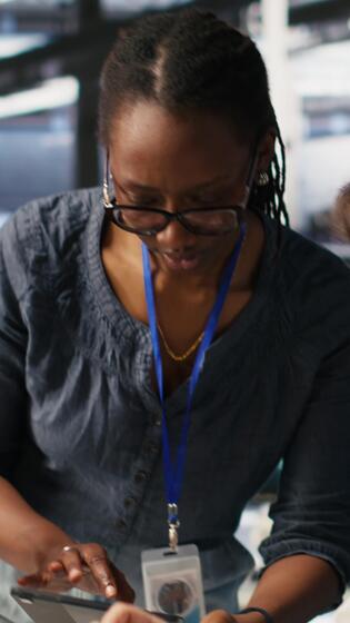 Vertical Smiling technicians doing fist bump in data center after successful deployment of AI tools. Server room engineering team celebrate completion of machine learning system integration, camera A Pro Video