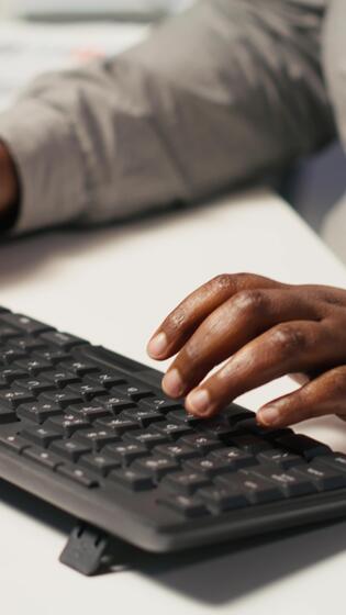 Vertical Close up of data center admin coding on PC, doing software updates for AI mainframes. Server farm IT professional typing on computer keyboard, optimizing infrastructure, camera A Pro Video