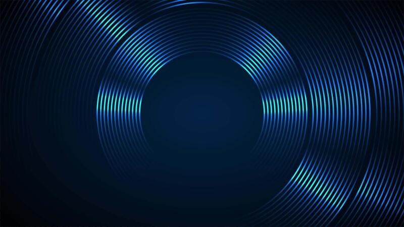 Abstract animated background with shiny blue circle lines spinning in dark space. Dynamic and smooth rotating ring stripes for ads, cover, backdrop, business, sales presentation, promotion, etc Pro Video