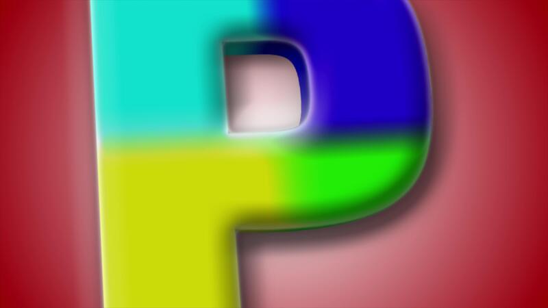 Creative 3D rendering of letter P with bold hues and movement, set against a smooth red backdrop for use in digital design. Pro Video