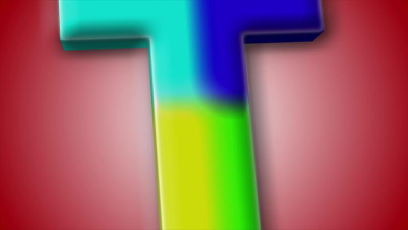 Color-shifting 3D animation of letter T set on a red gradient canvas, designed for creatives in this and digital media. Pro Video