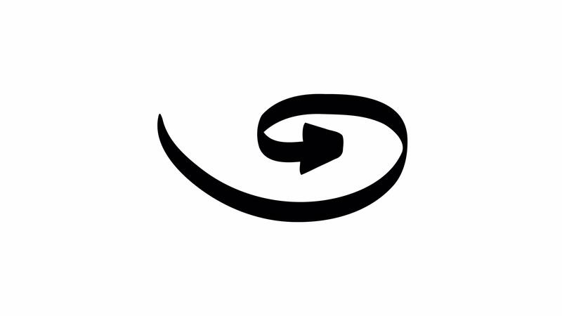 Looped 4K animation of a hand drawn spiral arrow curling inward and pointing right, on a transparent background for motion design use. Pro Video