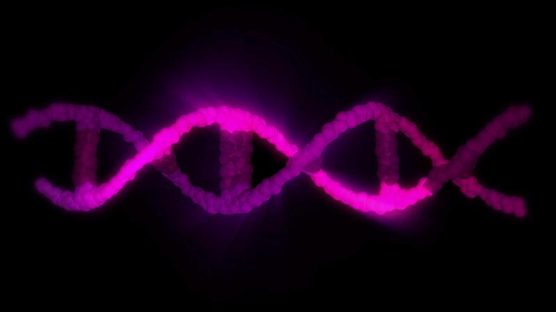A close-up of the DNA double helix structure, highlighted in bright purple, showing its twisted ladder-like structure in looping motion. Free Video