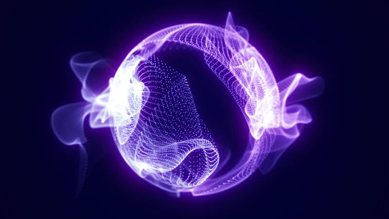 Abstract glowing purple digital sphere formed from delicate particle waves, futuristic and dynamic energy visualization Free Video