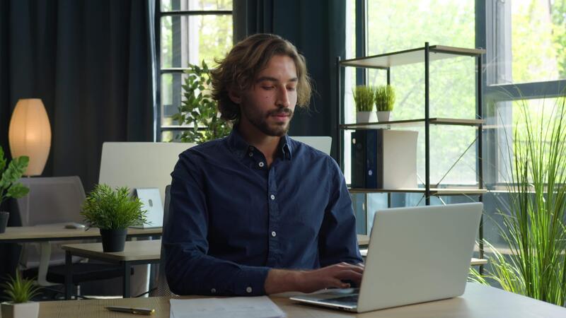 Arabian middle eastern ethnic man businessman programmer software coder office worker executive manager employer entrepreneur working with laptop computer business corporation looking at camera smile Pro Video