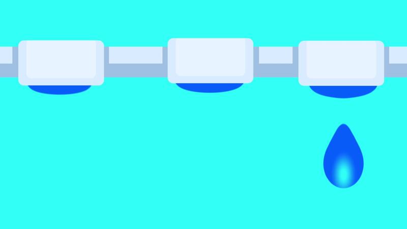 Multiple water droplets fall rhythmically from a futuristic pipeline, symbolizing efficient water distribution and clean resource flow Free Video