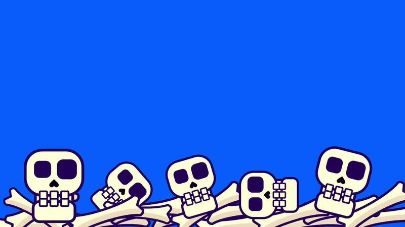 Several skull characters appear collapsed or resting, scattered loosely across a blue backdrop as if defeated or awaiting activation Free Video