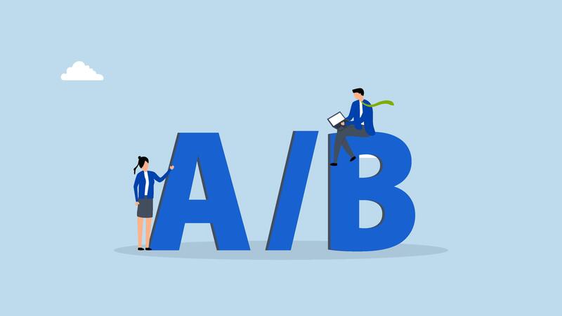 AB testing, 4k animation of Entrepreneur coder and users positioned on letters A and B for evaluation. Pro Video