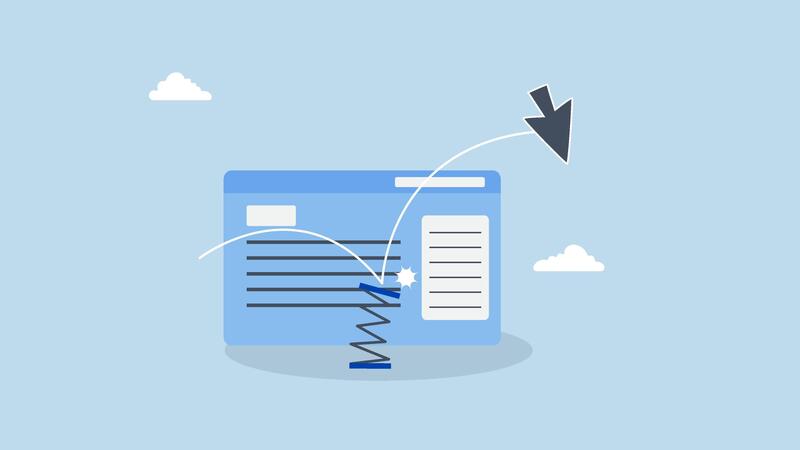 Website bounce rate, 4k animation of mouse pointer fall and bounce on trampoline on website page. Pro Video