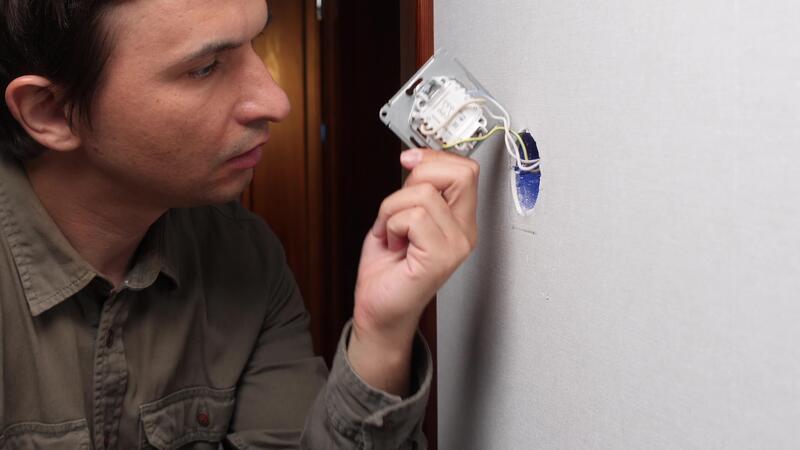 Stressed electrician making mistakes while installing light switch Pro Video