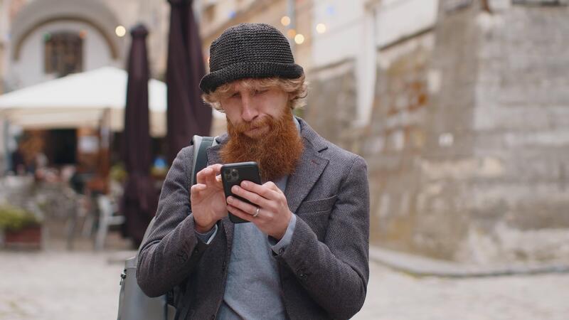 Man using smartphone typing text messages looking for a way on map in mobile navigator app Pro Video