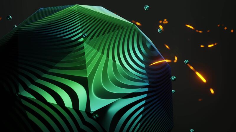 Abstract green sphere in space with orange tracks on it. Loop animation Pro Video