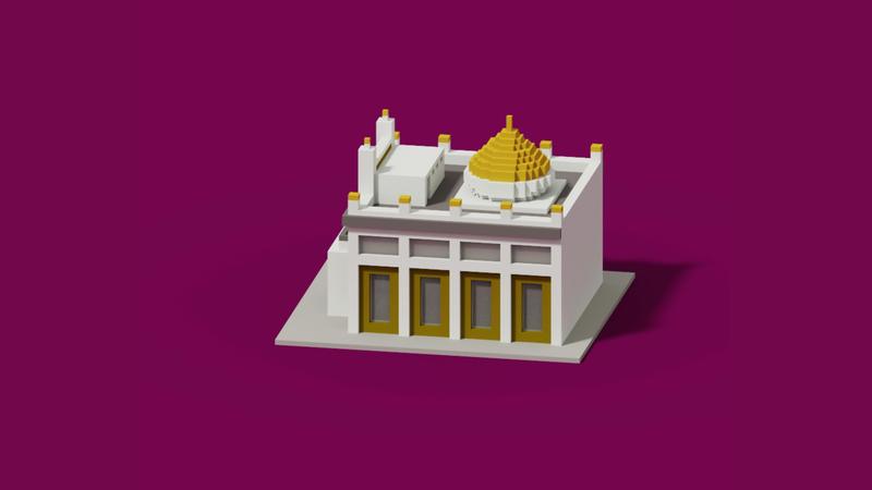 Rotating Mosque Building animation using voxel style. With golden and white color scheme Free Video