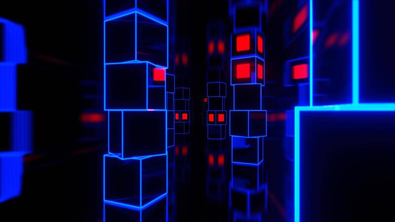 Blue and Red Futuristic Strobe Corridor with Abstract Cube Columns Background VJ Loop in 4K Free Video
