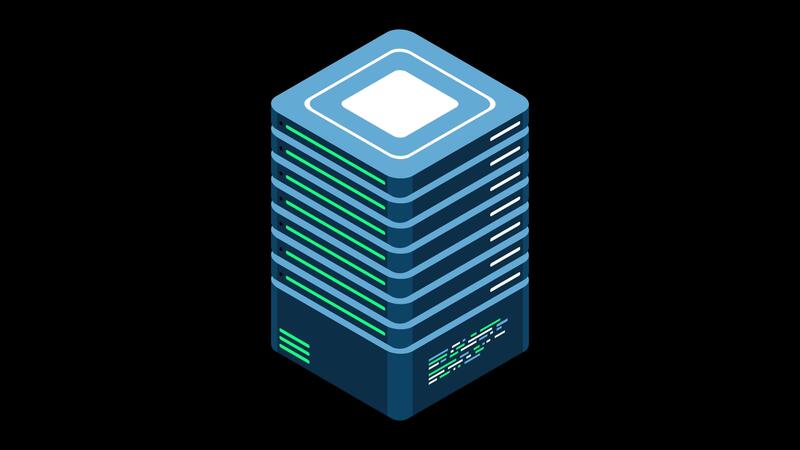 Isometric server animation. Network server room. 3D computer equipment. Storage database. Isometric technology. Transparent background with alpha channel. Pro Video