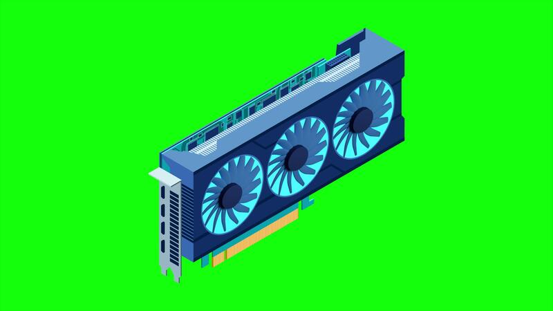 Isometric graphic card animation. card isometric. Computer hardware components. GPU graphic card 4K animation. Pro Video