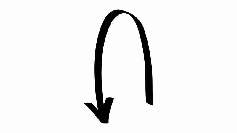 Looped 4K animation of a tall curved hand drawn arrow looping over and pointing downward, on transparent background for motion graphics use. Pro Video