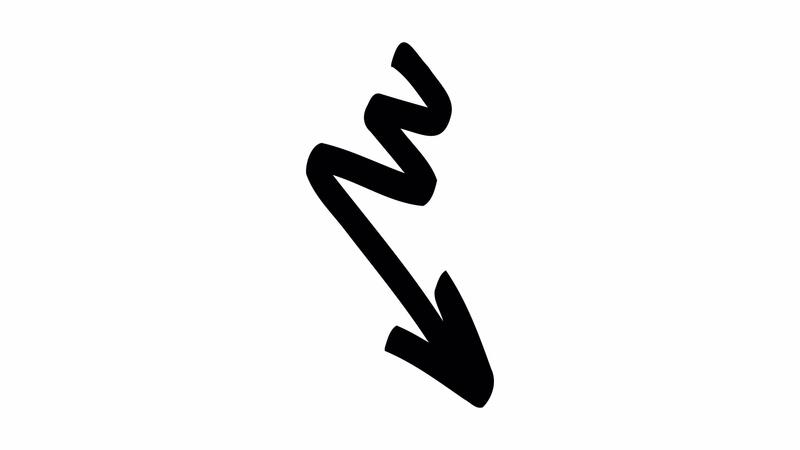 Looped 4K animation of a zigzag style hand drawn arrow pointing downward and to the right, on transparent background for motion graphics use. Pro Video