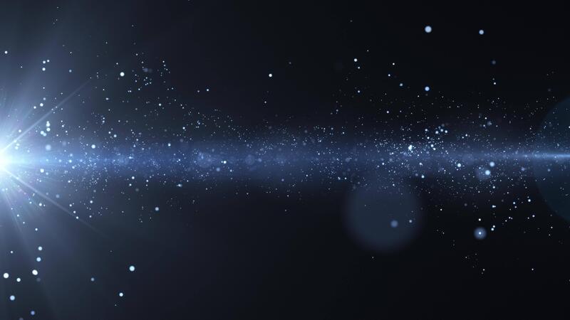 Abstract futuristic background with flying particles in space with Optical lens flare effect. Cinematic Light, Seamless loop Pro Video