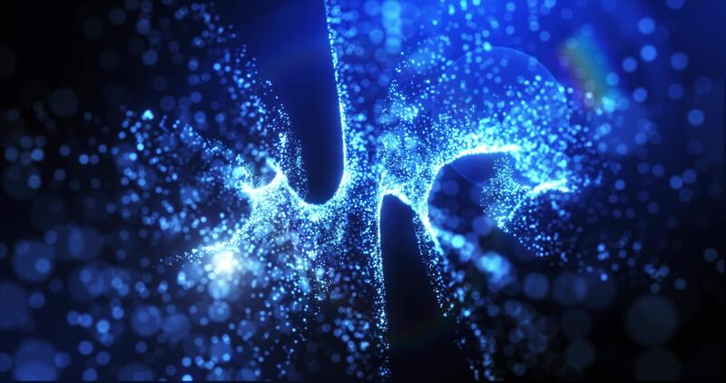 Abstract blue digital dynamic particle waves with motion light background, data flow, cyber technology. 3d rendering. Seamless loop Pro Video